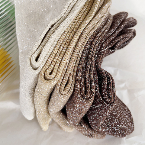 Hot Selling Fashion Women Shimmer Socks Popular Ladies Beige Khaki Coffee Black Metallic Gold Silver Lurex Shiny Glitter Socks