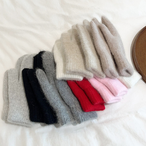 מזג אוויר קר xmas שנה חדשה מושלג שמירה על מתנות חמות נשים אופנה עבה ארנב שיער תערובת סרוג כפפות יד