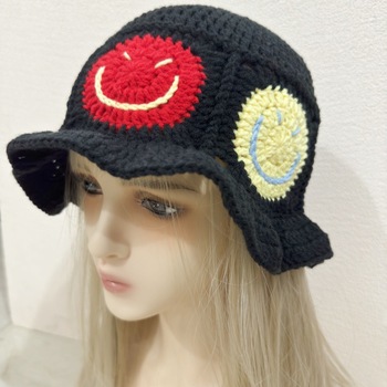 2025 סטודנטים סטודנטים גבירותיי מצחיקות חידוש מצחיק חיוך שמח פנים jacquard לבן רקמה שחור לבן שמש דלי נסיעות הכובע
