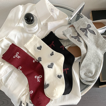 2025 ולנטיין גרביים הסיטונאי במלאי חדש אופנה קוריאנית חמודה לב קשת עניבת kneot jkard נשים גרביים כותנה