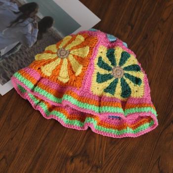 2025 אופנתי פס rrffle חדש טרנדי פאצ 'ט ורוד כחול חרוז יד סרוג יד סרוג יד סרוג שמש מדלי כובע לדלי נשים